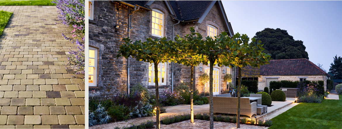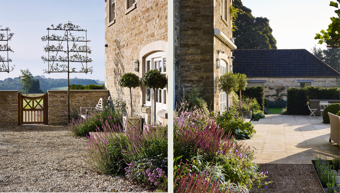 Designed by garden designer Rachel Garrood the grounds of the Cotswold country house had been extensively redesigned. The project comprised of Cotswold stone walling, new sawn York stone terraces, metal edging welded on site, cobble paths, hoggin paths, extensive topiary, planting, a lighting scheme design and ducting and a design of the automatic irrigation system.